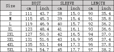 *Sizes may have a margin of error of 2.54cm,or 1 inch due to manual measure. This product is a slim fit, if you want a loose fit please size up